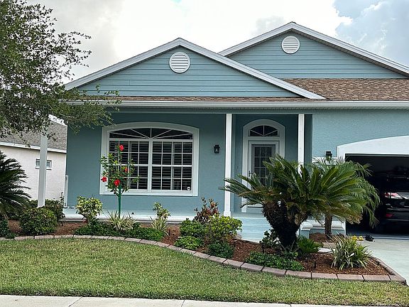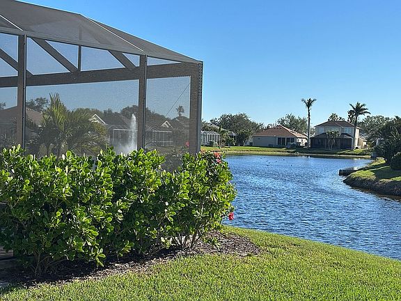 A light and bright 3 Bdrm Ranch home. Back of home looks out on a nice-sized pond and the front looks out on a nature preserve, with a front porch to sit on and enjoy. Roofed lanai provides weather-proof outdoor room. Situated close to beach in great neighborhood.Beautiful community pool 2 blocks away. Zoned so no flood insurance is required. Home comes almost fully furnished.