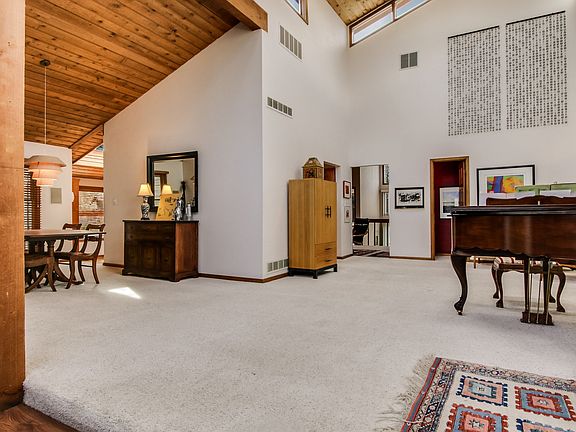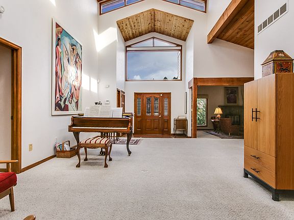 Custom one of a kind home that will blow you away! An architect's delight! Large windows with tons of natural light, soaring wood ceilings & beams and very functional floor plan. Open master bed with sitting area, marble bath & walk in closet. Lower level bedrooms are full windows & nice sized! The exterior has access to golf course & views. Mature trees will fill & provide a nice serene back yard to enjoy. Surround speakers inside & out. Great neighborhood, beautiful block- fantastic house.