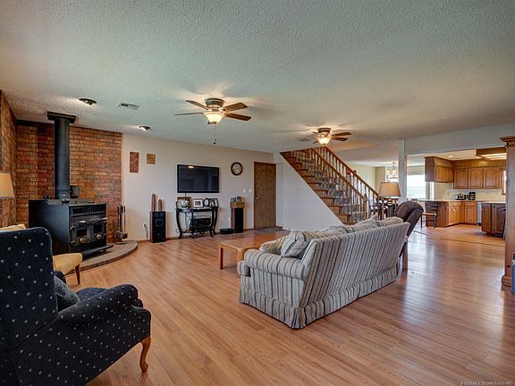 4 bedroom mini ranch located SOUTH of Oologah ONLY 10 minutes North of Owasso. 4 bedrooms + office, 2.5 baths. 4th bedroom could be 2nd living, game or 2nd master w/half bath! Cross-fenced 5 acre. Shop and barn, island kitchen, HUGE rooms!
