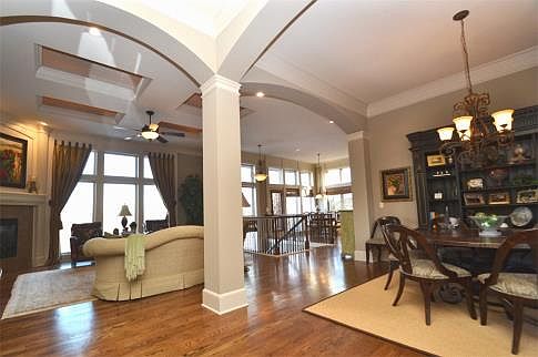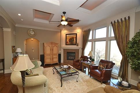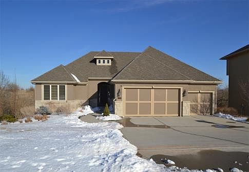 Prepare to be impressed! Discover everything on your wish list including: an open, airy design, hardwood floors, plantation shutters, elaborate detailing & trim work, soaring ceilings, charming archways, grand windows, sleek stainless steel appliances, & gorgeous granite! Convenient main level Master Suite retreat complete with a stunning multi-inset ceiling, jetted tub, dual vanities, & a delightful window seat that overlooks the wooded grounds! You will also appreciate the added convenience of an additional Bedroom or optional Den with a connecting Full Bath! The generous finished walkout lower level also provides lots of additional living & entertaining space & even includes a handy wet bar & a cozy second fireplace! Two more secondary Bedrooms are also located here! High end finishes, beautiful treed views from the deck or patio, & easy highway access! All this, located in one of Johnson Counties most beautiful resort-style golf & lake communities! For more information, please call 913-661-2303.