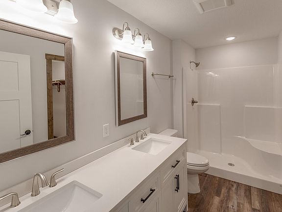 New construction with all the upgrades. Gas fireplace, custom cabinets, owner's suite with double vanity, stainless steel appliances, gas stove, all located in a wooded development close to town. This lot features a very private back yard and an open divided -bedroom floor plan. A great place to call home!