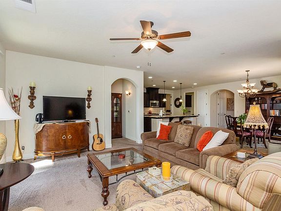 Beautiful home in Tuscan Bluffs, right on the 14th hole of the Copper River Golf Course. Three bedrooms and three baths, plus an office, and all of the bedrooms are separated for privacy. In addition to the master, there is a second bedroom with a private bath. Solar lease is already paid, plus 2x6 walls, and a tankless water heater. Elegant living, with energy efficiency.