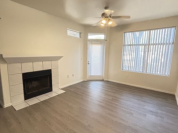 Wood fireplaceOpen floor planWalk-in closetWalk-in custom closetClean and neat unitGround floorHard floor