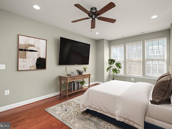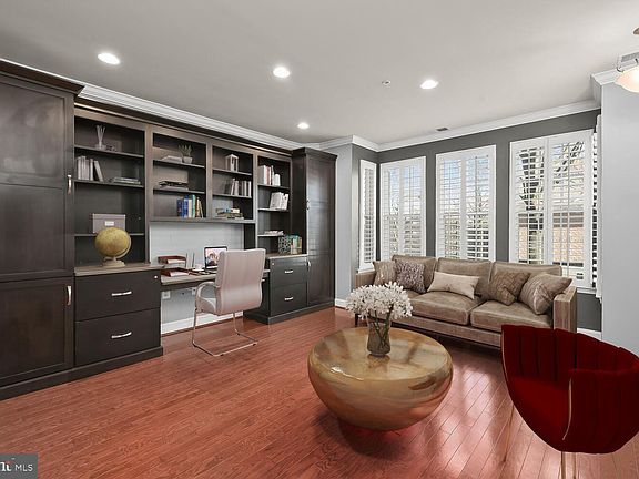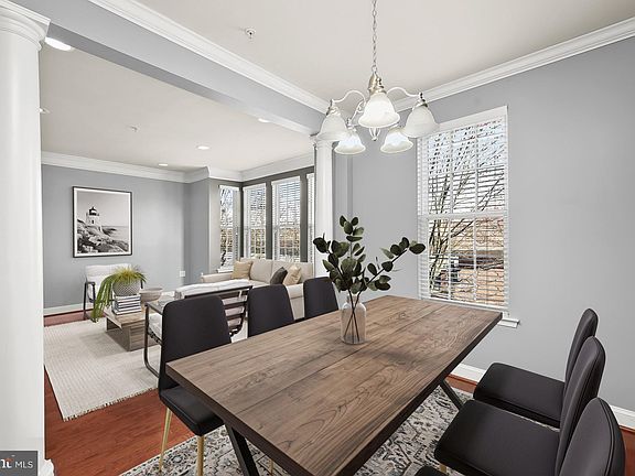 Fall in love with this finely crafted luxury two-story condominium nestled in the Midtown District of Maple Lawn! Ideal location directly across from the pool, gym, and community center; Gleaming hardwood floors on both levels, light-filled interiors, crown moldings, stately columns, warm recessed lighting, and design-inspired features throughout! Enter into the main level family room outfitted with custom built-in cabinetry, wood shutters, a full bath, and garage access; Upper-level living and dining rooms with lofty windows perfect for entertaining family and friends; Kitchen equipped with granite countertops, 42” cabinetry, stainless steel appliances, pendant lighting, and breakfast bar; Primary suite adorned with a walk-in closet and a luxurious bathroom with a soaking tub, and dual vanities; Additional bedroom, full bath, and laundry complete this wonderful home; Community Amenities: Enjoy the award-winning Maple Lawn amenities including a community center with fitness rooms, inground pool, tennis courts, basketball courts, picnic pavilions, playgrounds, running track, 2-acre open field, and dog park. A wide array of dining options, shopping for all your needs, and entertainment with events throughout the year while offering close proximity to major attractions and highways.