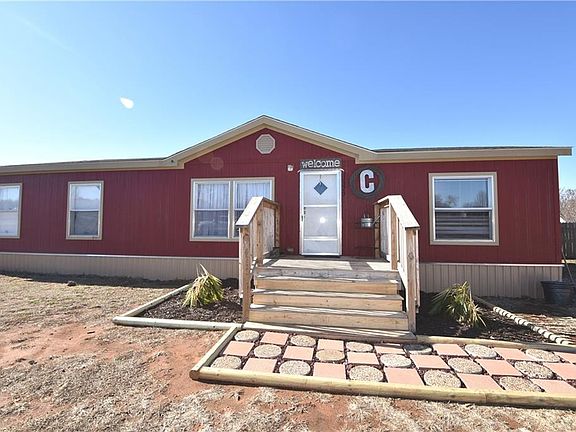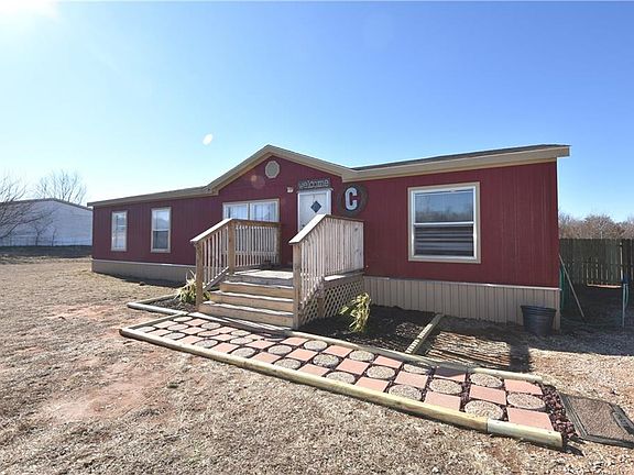 A 2012 Legacy model that was purchased in August of 2013. It measures 56' X 32'. There are two lots with this sale and the home and all improvements are on the south lot. It is total electric with well and septic systems in place. There is also a small shed in back yard and the home is in great condition and this is ready to move into. The floor plan is very open with the living-dining-kitchen all within the middle of the home with utility area master to one side and the other three bedrooms at the south end of the home. Very close access to I-35 and near the newly built Guthrie grade school.
