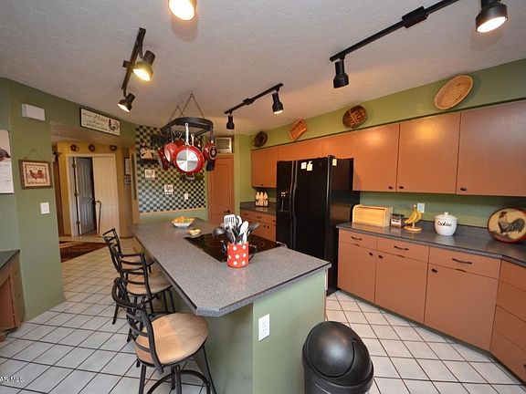 Stately Golf Course Home! Approx. 3171 sq. ft., split bedroom floor plan, double sided fireplace, island kitchen, built-in display cases, all with 3 bedrooms and 2 bath located on the wash facing the golf course. This home also features a 2 car garage with a golf cart side entrance.The back yard is fenced and offers amazing golf course and mountains and views from the covered deck. The front features a circular driveway and RV parking.