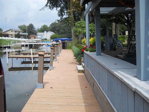 80 feet of Wawasee Channel Front. 4 bedrooms, 2 full baths. Pond, Waterfall and your own outdoor fun. Partially covered pier and outdoor living. This a must see property. 20 x 20 area ready for garage if wanted. Spectacular landscaping.