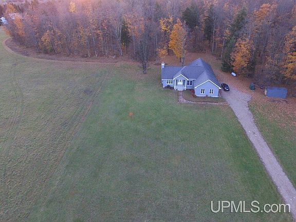 Beautiful 3 bedroom home on ten acres with nice mixture of hard woods and open field. Well constructed open concept with large master bedroom and bath. Nice two car garage, and full basement. House has forced are with an out side boiler and is plumbed for in floor heat in basement but not hooked up. There is more acres available if interested.