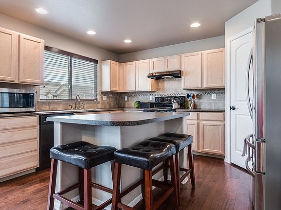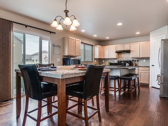 Best of both worlds! Almost new home, just a few months old, but ready now and has bonus finishes you won't find in builder homes: custom window coverings, pet friendly fenced yard, and custom builtins for master closet. Enjoy relaxing on large corner lot with mountain views, 2 story great room in a bright open floorplan, large kitchen with walk in pantry and center island great for entertaining, wood laminate floors throughout main level, walking distance to Imagine Charter School and park/playground on a quiet street, easy access to I25 for commuting, laundry on the 2nd floor with bedrooms, and unfinished basement ready for whatever you might need.