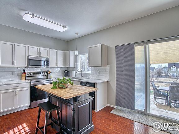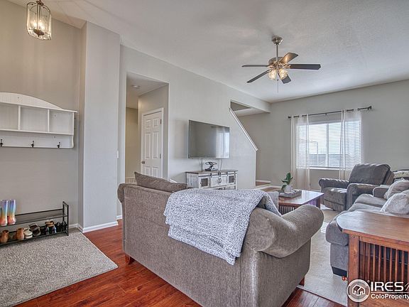 Location location location! Backing to a green belt and well-maintained community garden, the exterior living space boasts mature landscaping and offers a peaceful retreat. Entering in, you will be greeted with a spacious living room, a bright and open layout that offers easy flow for entertaining and daily function. The updated kitchen with granite countertops, new tile backsplash, lighting, stove and butcher block island opens to a backyard oasis with extended concrete patio offering up both downtown Denver and mountain views. Head upstairs and you will be met with new carpeting, 2 primary rooms with walk-in closets and ensuite bathrooms, two additional bedrooms and a 3rd full bath. The unfinished basement has radon mitigation installed, egress windows and bathroom rough-in which provides the opportunity to finish for additional square footage or utilize as storage. Move-in ready with new interior paint and flooring, new window coverings, new washer, dryer, stove, newer roof, exterior paint, 40-gallon water heater and furnace as of 2022. Walking distance to Skylake Ranch park and surrounded by amenities, low HOA and No Metro taxes. Come see why this could be THE ONE!