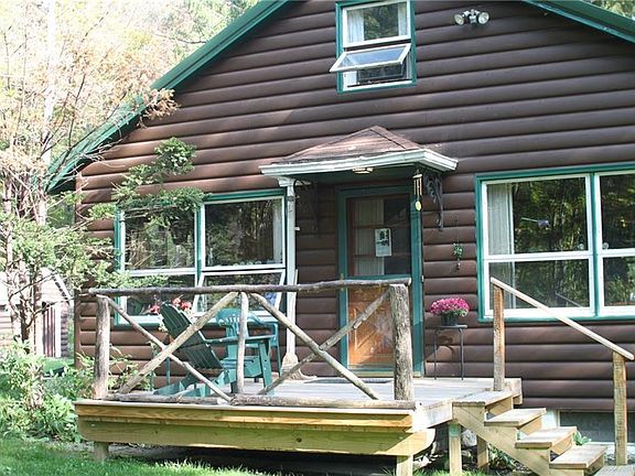 Authentic Log Cabin Home! No drywall ! Upgraded kitchen, appliances stay, newer stove, 1st floor laundry, 1st floor bedroom, 2nd bedroom loft. Wow Massive fieldstone fireplace welcomes you. Picture windows with views, newer deck, 2 car garage, new furnace. Ski get-away, fishing, hunting. Priced to Sell ... If you want a log home with great details this is it.