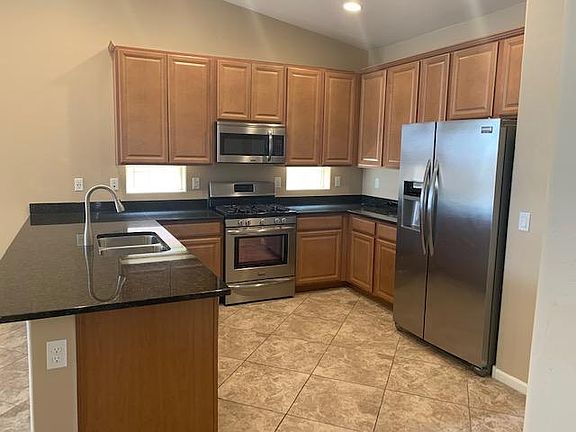 Vail School District! Convenient to DMAFB, Raytheon, Amazon, Target Fulfillment Center & Shopping! Check out this 5 bedroom beauty with terrific open concept living space! Like new condition! Upgrades galore! Ceramic tile, newer carpet in bdrms, kitchen has stainless steel appliances including gas stove, dbl pantry and granite counter tops, separate laundry room, 5 bdrms (or 4 + office) 1 bdrm and bath located at front of house separated from the other bedrooms which would be great for office or mother in law quarters, or guests, 3 baths, large master suite with exterior door to covered patio, spacious walk in closet, vanity with double sinks in master bath with beautiful walk in shower with bench. Easy care front yard and bricked in backyard with artificial turf and gravel, covered patio with mountain views, finished dbl garage with painted cement floors. Tenant pays all utilities, weed and pest control $275 pet deposit per animal (Limited to two small pets)