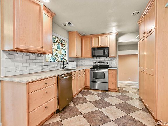 Come see this nice home near lake with a large shop and lots of covered parking! This 3 bedroom, 2 bath home features gourmet kitchen w/ Corian countertops, formal LR and DR w/ hardwood floors, newer roof and cozy fireplace. Spacious family room w/ newer laminate. Luxurious Master Suite includes walk in closet and full bath. Outside features fenced yard, heat pump, attached single car garage + carport, detached 2 car garage/Shop and separate RV garage from alley access. Home has lots to offer!