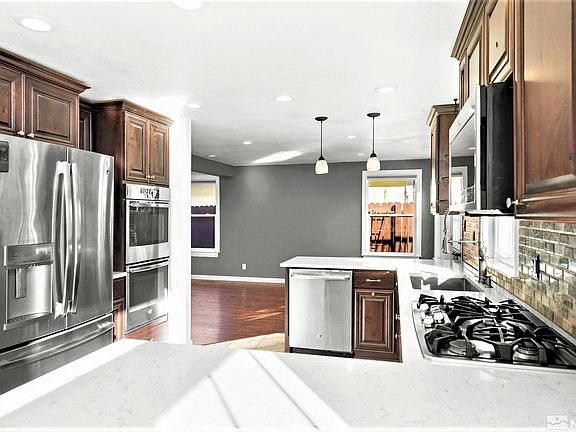 Charming, Delightful! Check out this 4/2.5/2 Car Garage NW Reno home with over 1700 SF of living. Features: Tile Entry, Hardwood Flooring, Newer Interior Paint, Wonderfully Remodeled Kitchen, Granite Countertops, Newer Stainless Appliances, Upgraded Recessed Lighting, Undermount Kitchen Sink, Newer Custom Reno Tahoe Soft Close Maple Cabinets, Tile Backsplash, Pull Out Drawers, Spice Rack, Stainless Double oven, Breakfast Bar. Stacked Stone Gas Fireplace w Wireless Remote., Primary Bedroom w Modern European Style Bath, Magnifying Mirror Lights Up with clock, Twin Sinks w Skylight. Volume Ceilings, Newer Roof, Newer Exterior Paint, Deck off the back with Mountain views, Plush & Lush Yard w Raised Garden bed, Newer Epoxy Garage Flooring, Very Close to all Schools, Shopping & Parks are around the corner, Yard Swing, Central Heat & A/C, Thermostat & Irrigation on Wifi.