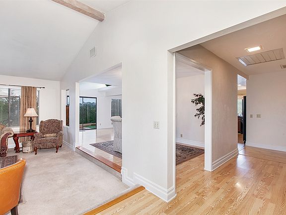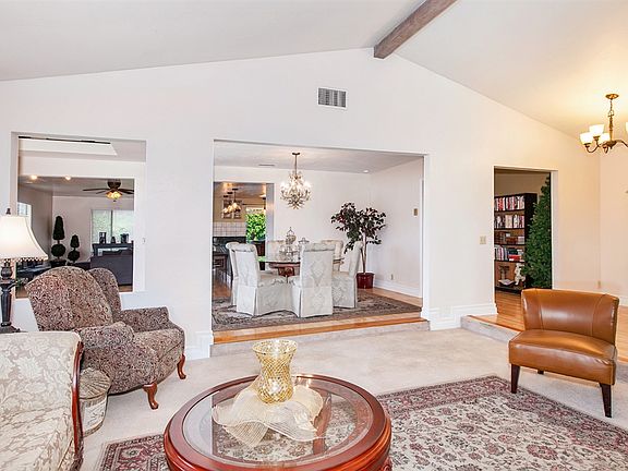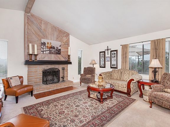 Enjoy Serene Hilltop views of surrounding groves from the quiet outdoor gazebo. Enter through the decorative leaded glass doors to the upgraded kitchen w/granite tile counters and seating area that opens to spacious family room. French Doors lead to backyard deck complete with an outdoor fireplace and built in BBQ island for entertaining. Separate dining area and living room w/fireplace. Remodeled bath, Upgraded 6" baseboards, Solar panels. Additional bonus room off finished garage with 3/4 bath. Laminate, Tile and Carpeted flooring throughout with upgraded 6" baseboards. Wide hallways for easy access in this single story home with plenty of parking with long driveway for RV and storage sheds. Energy efficient home features Whole House Fan and Solar electric system (leased) to zero out electricity bill. Assorted citrus trees on one acre lot with quaint backyard seating areas offer views with outdoor entertaining areas including covered gazebo, gas fire pit, BBQ Island w/sink. Circular driveway with plenty of storage...this country charmer comes complete with a chicken coop or dog run.