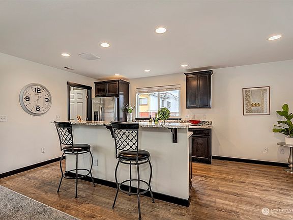 Welcome to your perfect starter home. Fresh paint & new carpet all throughout, corner lot, detached townhome in convenient North Everett location. Enjoy views of the Cascades from your spacious Primary Suite w/ a 5-piece bath. Main level features open concept living room w/ a fireplace, an adjoining powder room, dining area, cozy den, separate laundry room w/ full W/D, open kitchen w/ granite counters & stainless-steel appliances, hardwood floors. Large bonus room on lower level provides excellent flex space for your personal needs. Oversized 2car garage w/ room for storage. Well run HOA w/ community play area. Walkable to Everett Comm College/WSU. Quick access to I-5, Hwy 2, Boeing, Everett Waterfront & Downtown.