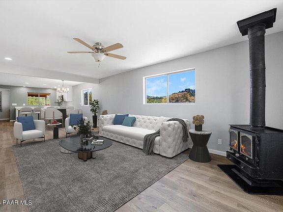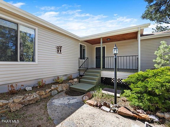 Pine Cabin, just minutes from downtown, offers modern amenities and uninterrupted views of the Bradshaw Mountains and Thumb Butte. This home blends modern convenience with timeless charm, featuring new flooring, a modern kitchen, granite in the bathrooms, and more. The lower level bonus space adds versatility, and outside, a spacious covered deck overlooks a meticulously landscaped hardscape and no care yard. This is an ideal escape for those seeking privacy and scenic views, yet desiring the convenience of downtown living. Come make this your home or second home today!!
