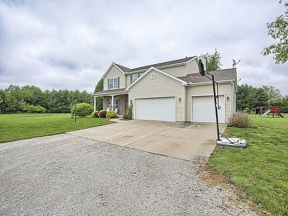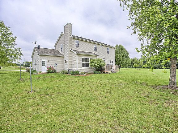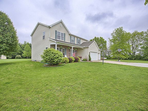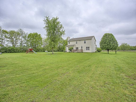 Wonderful home resting on 5.9 peaceful acres with an abundance of trees including white pine, fruit, and oak. Long windows in the living room give off loads of natural lighting. Crown molding and hardwood flooring set off the formal dining room. The hardwood floor continues into the bright kitchen and family room. The kitchen offers striking white cabinets, stainless steel appliances and pantry. Cozy, brick faced fireplace highlights the family room. The eating area overlooks the deck and serene backyard. Four generous size bedrooms on the upper level with 3 outfitted with walk-in closets. Luxurious bath with double sinks and whirlpool tub complement the master suite along with an adjoining study/den. The basement host a rec room for entertaining and approximately 700 sq.ft just waiting for your final touches. New roof with 50 year shingles in 2015. This could be your own piece of paradise.