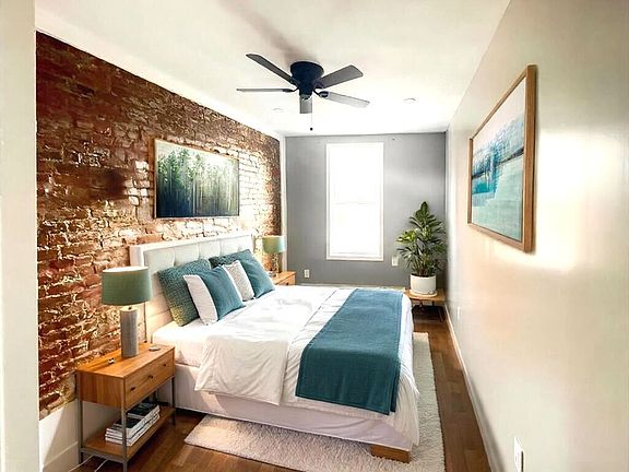 Exposed bricksKing-sized bedroomStainless steel appliancesHardwood floorsEat-in kitchen