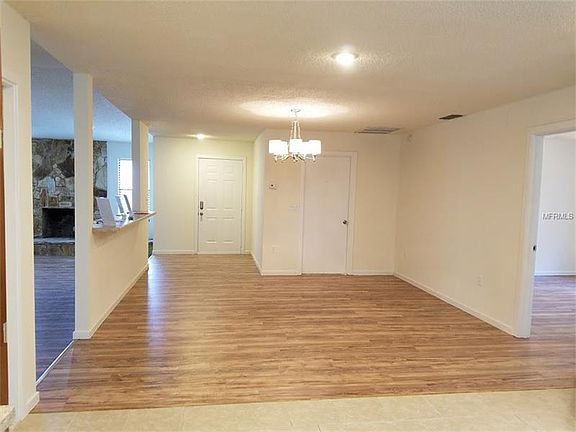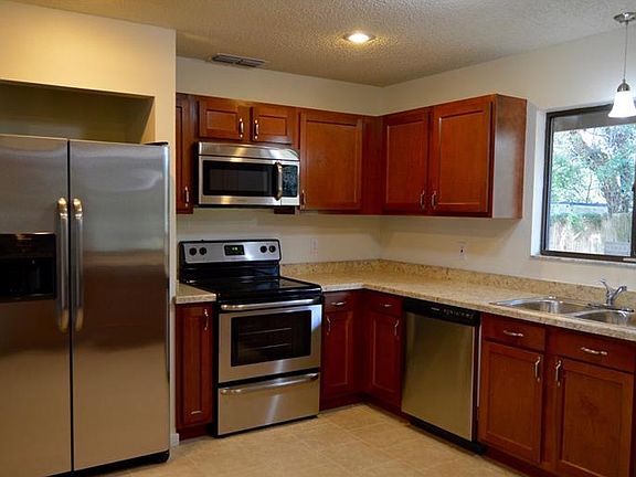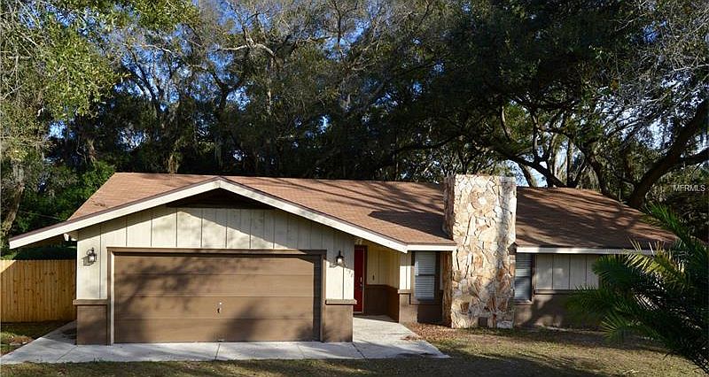 NEW PRICE IMPROVEMENT: 3 Bedroom, 2 Bath COMPLETELY RENOVATED INTERIOR WITH A GIGANTIC BACKYARD! This home has been completely remodeled with a brand new kitchen (with a skylight), new high-top in dining room (overlooking the living room), new bathrooms, new flooring all pulled together and presented with a warm and inviting feel! The kitchen has all new stainless steel appliances with beautiful counters and new dark wood cabinetry. The large living room offers a wood burning fireplace for those nights you just want to cuddle close with your loved ones! The master bedroom has a brand new bathroom that includes a shower, walk in closet, dual separate sinks, skylight and beautiful dark cabinetry. The covered screened in Florida Room looks out to the 0.98 acre backyard and has a 14x14 Storage Shed with electricity. The backyard is partially fenced and filled with mature Oak Trees. What a beautiful view! Entertain guests, have coffee in the morning or a lovely quiet dinner. You will not be bothered by the Florida mosquitos! Make this newly renovated home yours today!