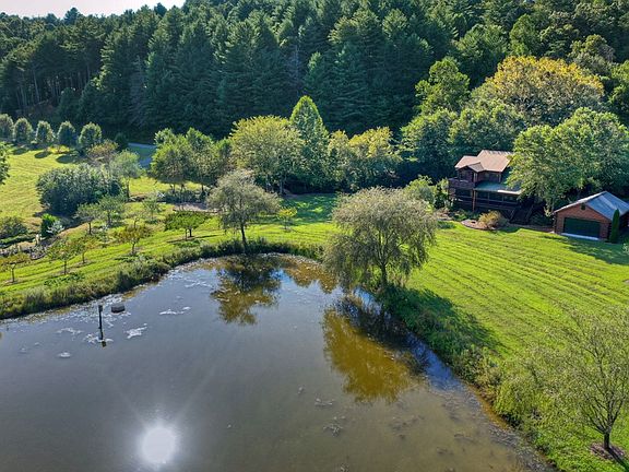 PICTURESQUE SETTING ON 5.1 ACRES W/SMALL LAKE AND OVER 900' OF SUGAR CREEK FRONTAGE! This True Log Retreat Features Great Room w/River Rock Fireplace, Hardwood Floors, Lots of Windows, Spacious Kitchen and Dining Area! Extremely Large Master Suite on Main Floor, Another Large Bedroom Upstairs w/Reading Nook and Private Balcony + Open Loft Bedroom! Screened Porch Overlooking the Pond and Beautifully Landscaped Level Yard w/Fruit Trees, Garden Spot and Firepit Area! Wooden Bridge that Crosses the Cascading Creek to Another Firepit Area! 2 Car Drive Thru Garage! Additional Lot Included W/Soil Work, Would be Perfect for a Guest Cabin! Only Minutes to Downtown Blue Ridge! This is a Must See!!!