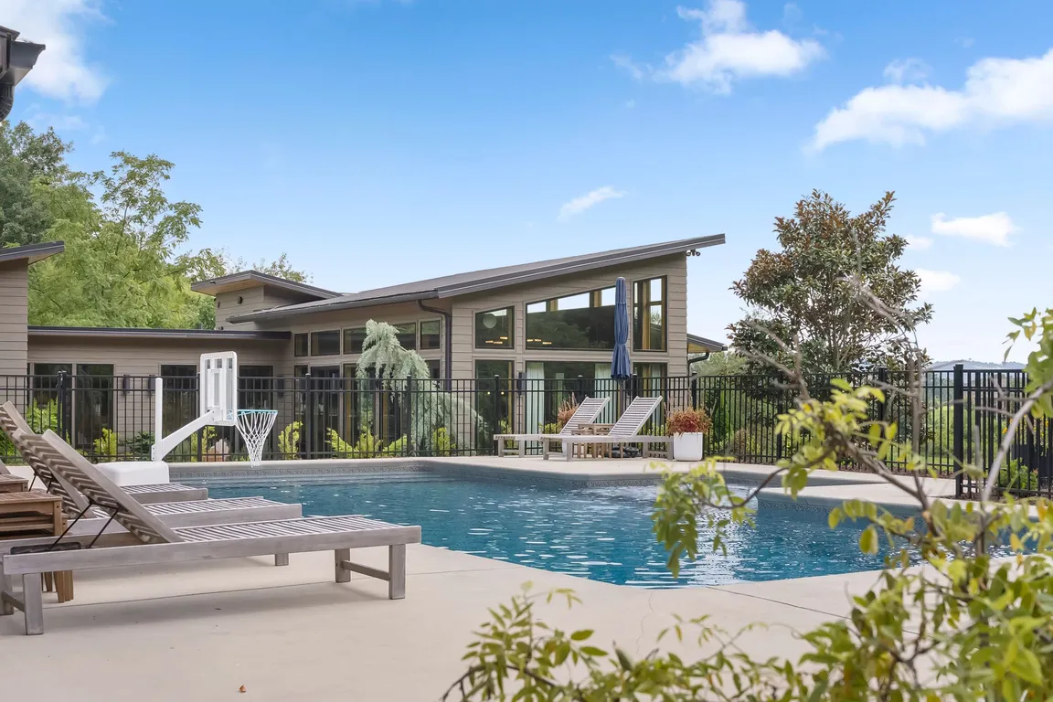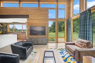 Sweeping mountain viewsContemporary styleTrue one-level livingClean linesNatural lightHot tubDramatic finishes
