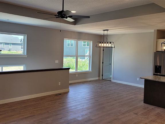 Academy Homes 2023 Atrium style Ranch with Finished Lower Level! Nearing completion. Quality Craftsmanship seen in the painted mission style trim & 2 panel doors, custom rustic shiplap fireplace, LVP flooring thru-out main living area & tray ceilings in great room & master. An abundance of natural light in the wall of windows leading to the LL. 4 bed, 3 full baths, plus a dedicated lower level office/exercise room/play area. Stunning kitchen with 2 tone spacious island, corner pantry, soft close cabinets & Cambria quartz counters & LG appliance package.