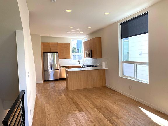 Pending lease signing Enjoy the weather with air conditioning and a rooftop deck! This is a Built-Green 4-star certified home. Large windows throughout; stainless steel appliances; quartz countertops; oak flooring; tankless water heater; and high-efficiency A/C. Quiet backyard. First floor has a large bedroom and its own full bath. Second floor is the kitchen, dining, and guest bathroom. Third floor has 2 bedrooms and a full bath. One of the upstairs bedrooms is small at 10ft8in by 7ft, but can fit a full-sized bed. Tenant responsible for all utilities. Deposit and fees total $2250. Tenant *does not* have to pay last month's rent upfront. Please apply through Zillow. Equal opportunity housing. Optional reserved off-street parking $50/mo. Firm no-pets policy.