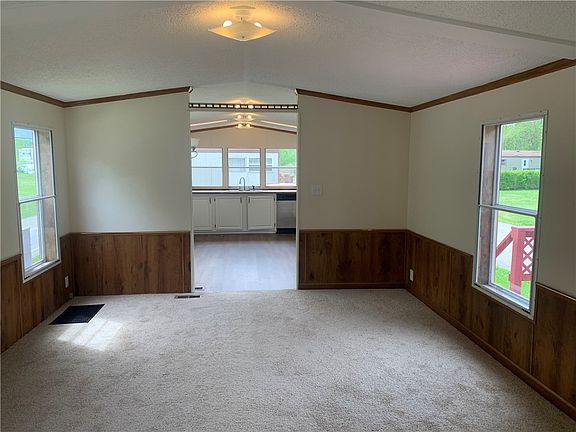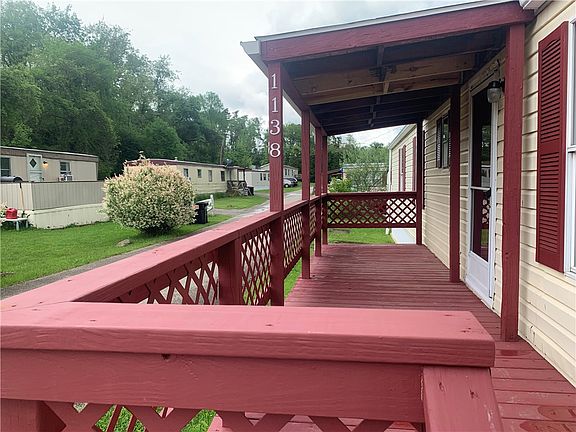 Newly updated 2 bedroom & 2 bath single wide mobile home with newer roof (12/2023), vinyl siding, and new carpet and laminate flooring (spring, 2024). The make of the mobile home is a 1991 Spruce Ridge with a lovely covered front porch. It is fresh and clean and has 2 off street parking spots and is located in North Branch Estates. The home is equipped with an electric stove and dishwasher. There is electric forced air heat. The air conditioner is not working. There is a 200 amp breaker box. The mobile home is on a rented lot. The lot rent is $465 per month and includes sewage and trash. The home is conveniently located close to Routes 980, 22/30, I576, I376, Robinson Towne Center, The Pittsburgh Airport and is in the Fort Cherry School District.