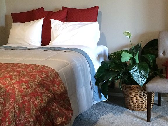 Enid's nicest one- bedroom extended stay! Great for traveling workers. Fully furnished condo includes a flat screen television for your comfort during your stay, in addition to a fully equipped kitchen. Washer and dryer in unit. 2 minutes to Vance. Easy, traffic free commute to Koch or for work at both hospitals. High ceilings, hardwood floors. Privacy, the property backs to trees and meadows. Quiet duplex building is shared with just three other units . Close to downtown with restaurants, pubs and music- First Fridays with live art, and entertainment! Very close to all great westside shopping, walk tree lined streets to lake, park trails and golf course. Text or call please. :-) Fully furnished, extended stay. Just bring your suitcase! Off street parking provided. One month lease, with a 30 day notice to vacate required. All utilities included in the monthly rental price (including wi-fi!)