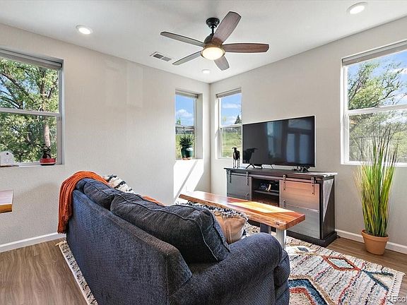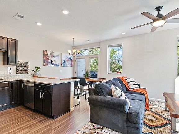 Perfectly situated on the Northwest side of Sunset Park, this charming "like-new" Townhome awaits your arrival.This meticulously maintained end unit home, receives incredible natural like, boasting an open concept style kitchen & Family room this home is ready for gatherings. Conveniently located near HWY 70 and 6th Ave, you are minutes away from Mountain fun, Downtown Denver, & Red Rocks. With easy access to the Oak Station Light Rail, your commutes just got easier. Enjoy the fresh morning sunrises from your owners suite's Juliet Balcony or an evening BBQ on your back patio overlooking Sunset Park.