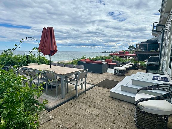 - Exterior features: 1st Floor Laundry, Architecture Style: Cape, Auto Open, Beach Access, Central Vacuum, Deck, Detached, Driveway, Garage, Gas, Heating system: Geothermal, Heating: Oil, Landscaped, Lot Features: Landscaped, Views, On Site, Parking Spaces 3 - 5, Patio, Paved, Primary BR w/ BA, ROW to Water, Views, Water Heater, Waterfront, Wine Cooler