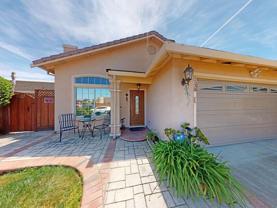Ready to Move In!! This Beautiful 4 Bed, 2 1/2 Bath home offers 1,807 sq. feet of living space and is located in a quiet Soledad neighborhood with easy access to the freeway. Front yard fully landscaped which includes stamped concrete walkways. Living room features cozy Fireplace with High Ceilings. Dining area/Eat in area in the kitchen offers lots of natural light. Kitchen is very spacious with tile countertops, lots of cabinet space and an island (which helps for those holiday meals). Master Bedroom offers walk-in closet and dual sink bathroom that is split from the shower. Bathrooms include custom lighting and tile countertops. Backyard includes stamped concrete, a Huge Shed with electricity, a covered patio with lots of space and a grassy area where your kids can play. Perfect for summer BBQ's and huge family gatherings. Side of the house offers stamped concrete and is big enough for room additions or additional RV parking.