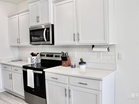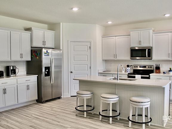 This like-new CORNER LOT 4-bedroom, 2.5-bath VICTORIA floor plan in Riverside at Arbor Walk is just six months old and has only been occupied for a limited amount of nights. Loaded with every builder upgrade, this home features quartz countertops, tile backsplash, EVP flooring throughout (no carpet), soft-close cabinets, and all stainless steel appliances, including refrigerator, washer, dryer. Enjoy the fully fenced backyard, screened-in back patio, large covered front porch, and 2-car garage. Built to Gold Fortified standards, it includes Smart Home Technology installed and security system with cameras. Outside three sides of brick with vertical Hardie Board siding on the front. Located just 20 minutes from the Gulf's white sandy beaches and minutes from shopping, dining, schools, and entertainment, this move-in ready home offers the perfect blend of comfort, style, and convenience. Still enjoy 6 months of builder warranty!!! Buyer to verify all information during due diligence.