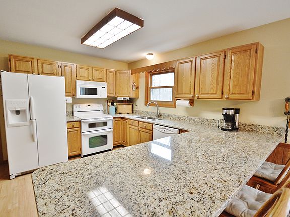 SO many updates and an excellent location! This 5 bedroom, 2 bathroom home offers a 3 car garage, a full basement & elbow room as it sets upon 1 acre! Updates include; windows, flooring, hot water tank, granite in the kitchen AND bathrooms, & a new septic tank. There's also an office that can be utilized as a bedroom on the main floor, the kitchen has a large breakfast bar & new appliances, & the wide brick patio is perfect for enjoying the outdoors.