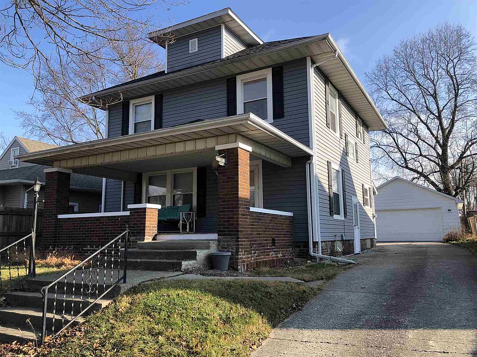 Spacious 3 bedroom, 2 bath home with newer siding, replacement windows and furnace! You'll love the welcoming covered front porch which is great for summer evenings. Large front foyer, huge living room and formal dining room. Plenty of hardwoods and charm throughout. A fenced yard and 2 car detached garage complete this great home!