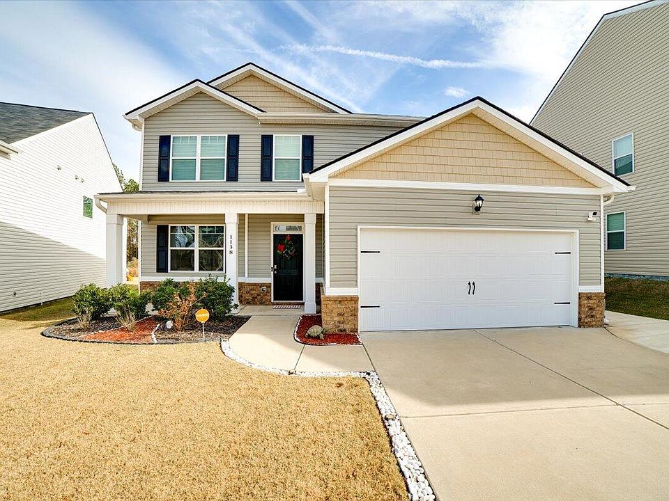Welcome to 1138 Sims Dr., nestled in Sims Landing— cozy, quintessential family home. As you step in, a beautiful foyer leads to a formal dining room. The open-concept kitchen boasts updated cabinets, subway tile backsplash, a large pantry, and stainless-steel appliances, including a high-end refrigerator. The main level is adorned with the owners suite, where the main bath is a sanctuary featuring dual vanities, a large garden tub, a water closet, a standing shower, and an impressive walk-in closet. Moving upstairs, you will discover three bedrooms, freshly carpeted, 2 full bathrooms, a large family room, and 2 linen closets. Also, you will find a guest bedroom with stylish vinyl flooring completing the upper level. This home offers a double attached garage with a professionally epoxy-painted floor. Exterior features include a fully sodded yard, 2-zone sprinklers, privacy fence, and gutters. Equipped with an industry-leading suite of smart home products that keeps you connected with the people you value the most, you will never be too far from home with Home Is Connected. HOA is $600 annually, with a community pool, sidewalks, streetlights, and proximity to Fort Eisenhower, Gate 1. This gorgeous home awaits new owners to make it their home!