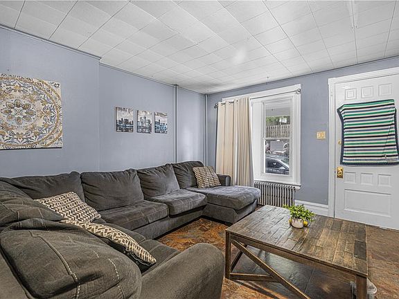 Unique architectural details on the exterior of this three story brick home further increase the character and charm that is evident in the third story arched windows and the details in the brickwork above the second floor. The living space on the first floor has been painted a beautiful shade of blue and is very complimentary to the space. The kitchen features white subway tile backsplash the coordinates perfectly with the neutral tone laminate countertops, stainless steel appliances and oak finish cabinetry. Location is a short drive to highways and shopping/restaurants as well. Schedule to see this amazing home today! Currently tenant occupied.