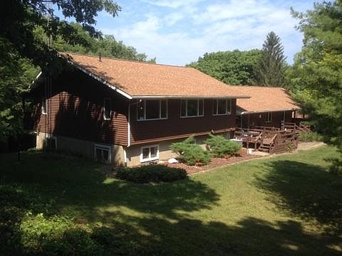 SPACIOUS country Estate Home on 9.1 wooded acres. Seasonal river view. Large Master bedroom balcony along with two other Balconies and a Large Covered partial enclosed 25 X 30 Patio with Stone Grill Area Etc , 2 fireplaces, Tranquil views from every room. 5th and 6th bedrooms have closets outside of Bedrooms, Property Taxes are Wonderful at App $ 3,000.00 Annually. Beautiful Large Stone Retaining Wall with Gravel Roadway leading down behind Home to Out Buildings and Large Garden Space. Abundant Wildlife Supporting Deer, Wild Turkey, Red & Grey Squirrels, Humming Birds Etc Etc. Brand New Grundfos Water Well & Pump System. Secluded from Roadway as Home is at the top of Hill with Engineered Roadway leading up from Route 26. Really must see to Appreciate this almost Ten Acre Wooded Property. Price Reduced. For Information Please Contact Owner Directly at 309-208-1811 by Phone or can E-Mail Owner at bmaubach@fsmail.bradley.edu