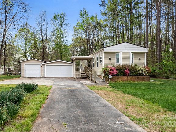 OWN your own HOME! No more renting! 1138 Stateline Road is a deeded property in the Southwoods II Subdivision. There is no HOA or lot fees. This well maintained manufactured home is situated on a 0.25-acre lot. The 2 bedroom/2 bathroom home offers 980 square feet of living space and includes a 2 detached garages and a storage building in the back. There is also an addition attached to the home which is 190 extra square feet. There are 2 ways to access the huge side porch: through the living area and the addition. Conveniently located to Lake Wylie for shopping. Home has a working water softener.