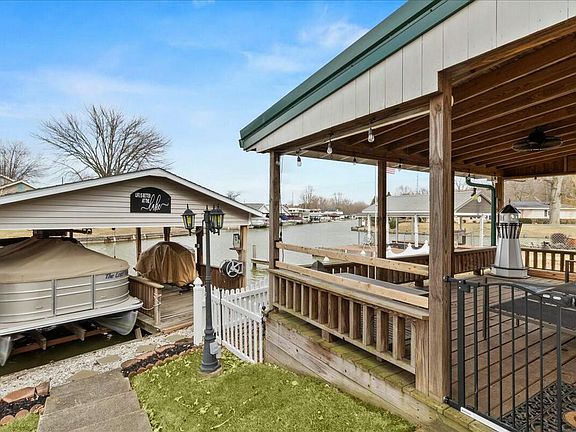 This charming waterfront ranch home is located on the tranquil street of Horseshoe Channel Drive at Indian Lake. Beautiful 4 bedroom, 2 bathroom open concept home is the perfect getaway or full-time residence for those seeking calmness and serenity on the water. Recent updates include new flooring throughout, top of the line stainless steel kitchen appliances, custom kitchen island, renovated laundry/bathroom, and all exterior landscaping. Tons a storage throughout. Two car oversized garage features a storage area perfect for housing all of your fun lake toys. Also included is a carport for additional covered parking and a 9x7 shed. The exterior boasts 2 waterside covered decks ideal for relaxing and enjoying the views. The covered boat dock with electric lift is a perfect fit for your boat. 2017 Sylvan 820 Mirage pontoon boat can be purchased separately. List of complete updates included in documents. Call today for you private showing.