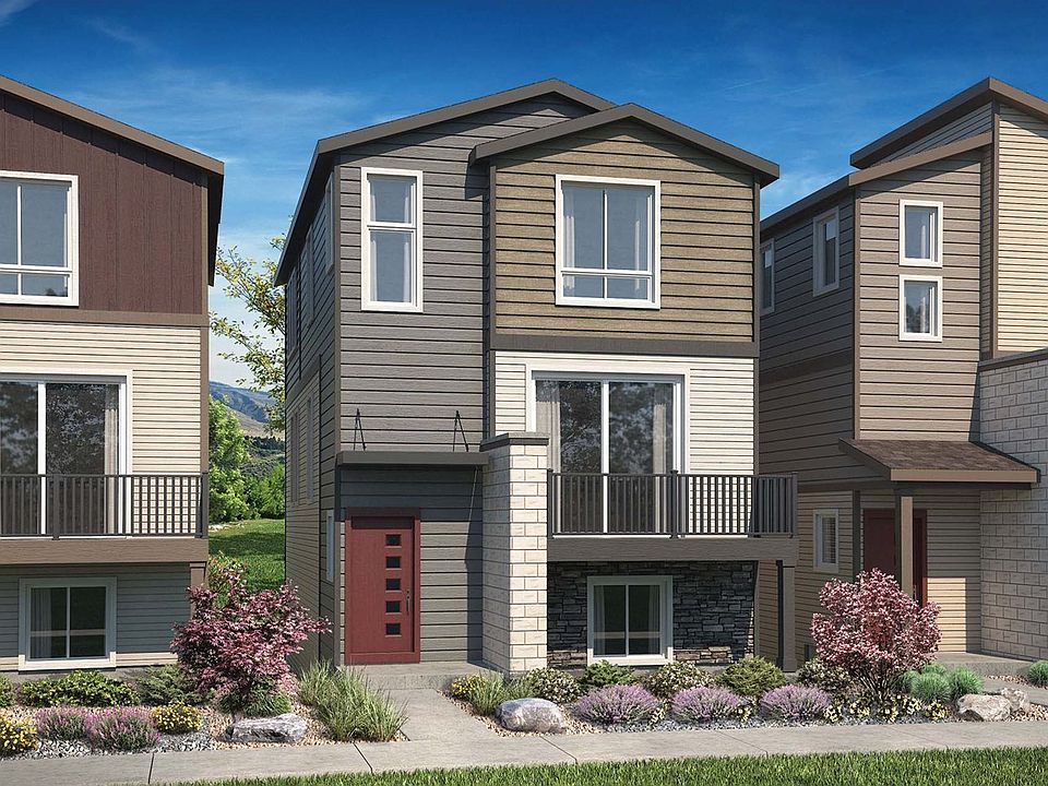 Ready in July. The 223-A is a 3-story urban style home with 2 car garage in our Midtown Collection at Foothills Farm. 3 bedroom, 2.5 bath home. Kitchen features maple cabinets, crown molding, quartz counters, stainless appliances and gas cook top. Air conditioning. Garage service door remotes and key pad entry. Open flex room has option as 4th bedroom. Deck off of dining room.Straight iron pickets at stairs. Gas line to deck and range. Landscaping included.
