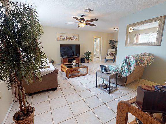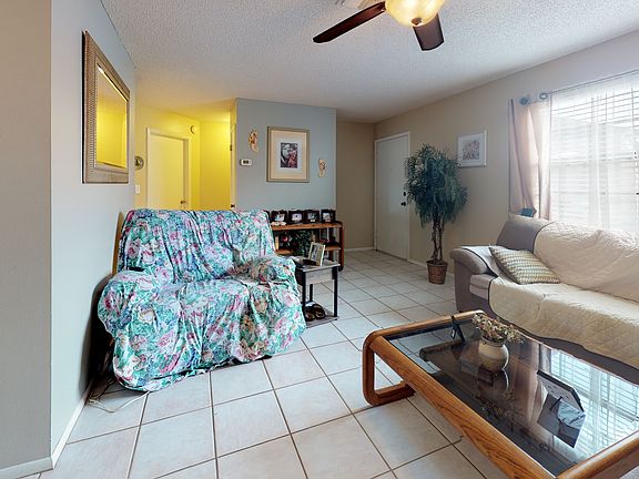 A great place to call home. A nice roomy layout inside and very functional. Tile floors run through the living and wet areas of the home for easy maintenance. The living room greets you walking through the front door and flows right into the dining room. Solid surface counters in the kitchen all neutral tones with a decorative backsplash and nice cabinet space. The master bedroom is very spacious in size and accommodating to large furniture with an attached bath. The guest bedroom is carpeted for comfort and has a ceiling fan above. The guest bath is just outside the hall for convenience. The screened in porch area also has windows surrounding that are tinted and the tile floors continue out there. The outdoor space is great for entertaining and the inground pool looks so refreshing. A nice size lot as well. This won't last!