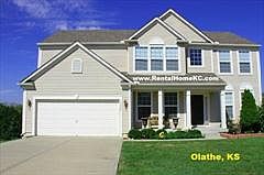 LEASE PENDINGThis immaculate home has lots of space and the features you are looking for. The main floor includes a formal living rooom and dining room, large family room with lots of windows and beautiful fireplace, breakfast room, kitchen with island, stainless steel appliances, gas stove, pantry, and oversize laundry room. In the front foyer, the impressive stairway leads to the upper hall overlooking the lower floor. Upstairs includes four bedrooms and 3 baths. The master bedroom is spacious and includes a sitting area. The master bath has double vanities, corner tub, separate shower and enormous his and hers closets. A great deck overlooks the backyard and greenspace beyond. The home also has a large unfinished walkout basement. Upgraded plumbing, siding and 4-zone HVAC make this an exceptionally efficient and trouble-free house. The home is located on a beautiful lot, with sprinkler system, that backs to woods, near the Kansas Biotech Center at College Blvd and K7 / Lone Elm. Terrific Olathe Northwest school district. Please see all of our current listings at www.RentalHomeKC.com