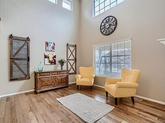 Don't miss out on this great multi-level home in River Run! Located just across from open space and walking trails and within minutes to Highway 85 or I76. The main floor features hardwood floors with a formal living and dining room, powder bath, spacious open kitchen with center island, all appliances stay and they are only a few years old, eating space, lots of cabinets, large pantry, bay window, updated lighting and overlooks the lower level family room. The lower level has a spacious family room with ceiling fan and access through newer French doors to the backyard, laundry room with folding counter and shelving. Upstairs you will find the vaulted master suite on it's own level with a large walk-in closet and 5 piece master bath. Just up a few more stairs you will find the loft overlooking the front living room, 2 more spacious bedrooms each with ceiling fans and a full bathroom. The basement has been finished and has room for a pool table or additional family room with a wet bar and a 3/4 bathroom. The backyard is beautifully landscaped with mature trees and a large stamped concrete patio. The 3 car garage is spacious with work bench and shelving. River Run features walking trails, parks, playgrounds and open space and is home to Thimmig Elementary School.