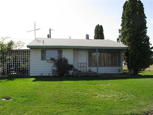 Country property with so much potential! Farmhouse built in 1953 has kitchen with dining, original hardwood floors, 2 bed/1 bath upstairs and partially finished basement with the possibility of two more bedrooms. Sitting on almost 9 acres with available irrigation. Surrounded by mature trees in a very private setting, old loafing shed, garden.