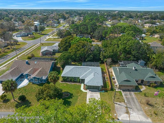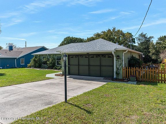 Active with contract accepting backups. The quintessential American dream home? You've found it here! This absolutely adorable gem is centrally located in a peaceful Spring Hill neighborhood with no HOA fees or restrictions. A screened garage and front entryway plus trim landscaping and a partially fenced backyard enhances the curb appeal. Inside, vaulted ceilings add volume to the spacious living and dining room combo. Whether you're hosting an intimate family dinner or game night, you'll have plenty of space to relax and entertain. Tile flooring throughout is chic and easy to maintain. Lay out the wine and charcuterie on the breakfast bar that creates a cute pass-through window into the kitchen, which was completely remodeled a few years ago. With beautiful wood cabinetry, laminate counters, a pantry, and sleek stainless steel appliances, it's sure to become the heart of your household. The master bedroom is generously sized with plenty of closet space; the ensuite master bath hosts a dual sink vanity and a large walk-in shower. Both guest bedrooms are also quite sizable so that the whole family or your visitors can enjoy their space in comfort. They share a guest bathroom with a tub/shower combo. Lovely French doors in the living room and glass sliding doors in the kitchen open to the pool area. Grab your towels and sunscreen, because it's time to enjoy the Florida lifestyle you've always wanted! Sip an umbrella drink from the shade of the lanai and take in a view of the backyard, shaded by large trees. New brick pavers make for an excellent spot to catch some rays. And the newly refinished in-ground pool is also heated, so you can swim to your heart's content year-round! The AC was replaced in 2019, and a re-roof completed in 2022. This home is in an ideal location. You'll be close to not one, but 4 local parks, all of which fall within a 5 mile radius: Rotary Centennial Dog Park, Delta Woods Park, Weeki Wachee Springs State Park, and Veterans Memorial Park. You're also within 3 miles of Spring Hill Elementary, Explorer K-8, and Springstead High School. There are tons of shopping and dining options nearby, including locally-owned favorites like Papa Clyde's Ice Cream, Caffe Connections, Jam's Cafe, Copacabana, PJ's Brick Oven Pizza, 787 House of Sugar, and more. Popular swimming destinations like Roger's Park and Pine Island Beach are only a short drive west. US-19 isn't far, so Homosassa, Tarpon Springs, and Clearwater are all easily accessible. And an entrance to the Suncoast Parkway is a few minutes east, so Tampa and the international airport are all also a convenient trip away. Don't miss your chance to own a piece of the American dream - make your appointment to view this one today!