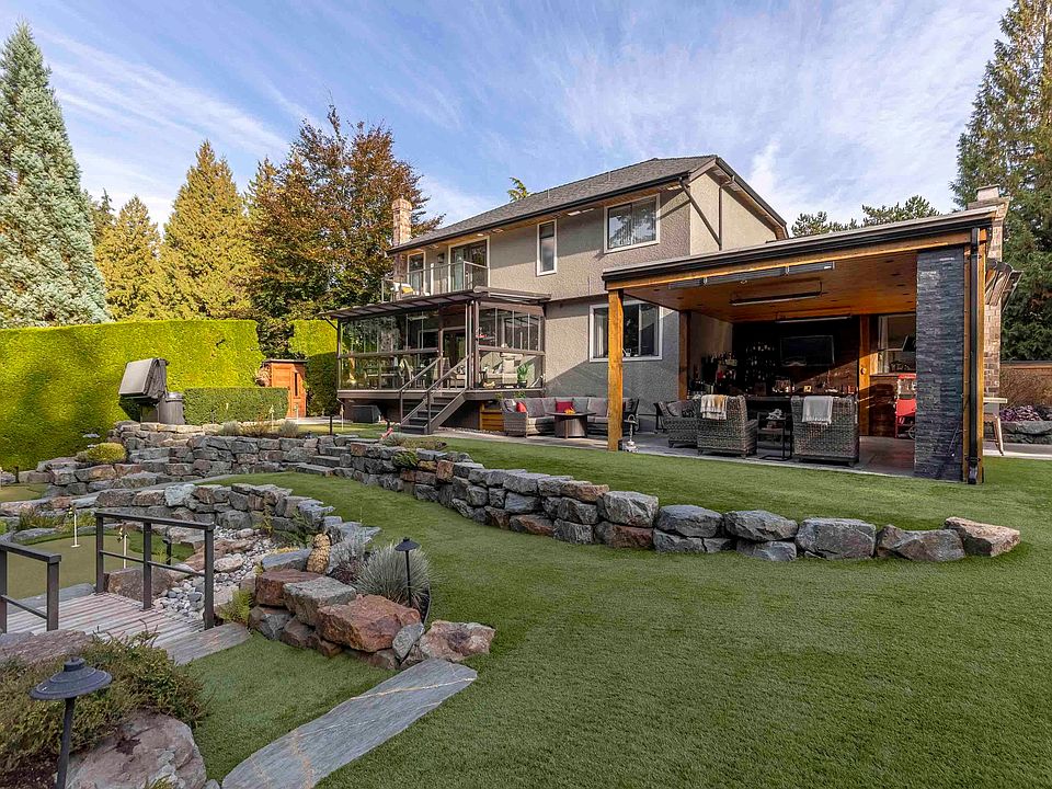Impeccably maintained and fully updated home blends comfort, style and function. This property is a dream for families or down-sizers who prioritize connecting with friends and family. A soundproof main-floor office, formal living and dining rooms and an open kitchen/family room create an ideal, traditional flow. A crawl space like no other with a beautiful wine cellar, seating area and more. A/C on the main floor and in the primary. The heated solarium with custom Lumon glass opens completely to the outdoors, leading to a stunning landscaped yard with turf, multiple gas fire pits, covered bar and lounge and putting greens. An amazing garage features hockey flooring and boards, gym and theatre area. Located on a private, quiet street 5 min. from schools, parks, shops, rec centre and Hwy 1.