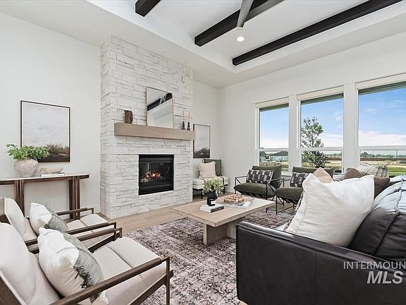 Tresidio Homes stunning Maple plan in breathtaking Valor on Falcon Crest Golf Course! Enjoy the best view in the entire community on this lot - views of water, fairway, and Owyhee Mountains for miles on end. With hassle-free zero scaping in the front, and turf grass in the back yard, you'll have more time to enjoy the golf course! This home has too many incredible features to name, but a few that stand out are water and golf views from the great room, dining room, kitchen and primary bedroom, stunning primary bathroom with spa like tile from floor to ceiling, amazing upstairs bonus room with balcony overlooking the water, and an awesome oversized 2 car garage, impressive for the lot size! No stone left unturned in designing this stunning home - with rich dark green soft close cabinets throughout, beautiful warm wood floors, high end touches like floating shelves with full tile in the kitchen, built in cabinets beside the fireplace, and beautiful masonry on the exterior, you'll be the neighborhood envy!