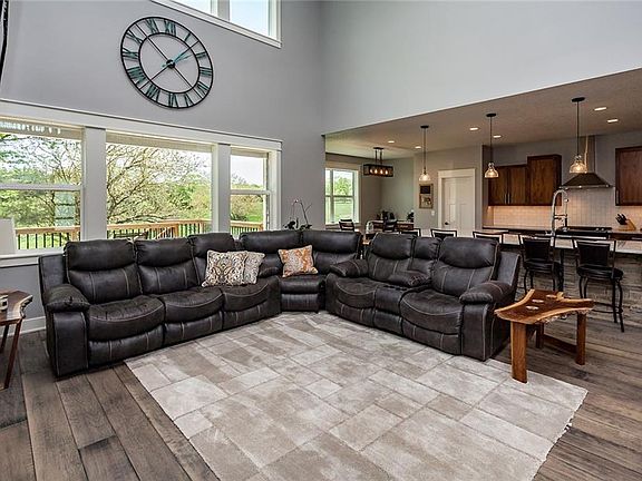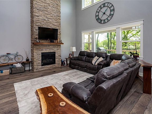 WOW! Wait until you see the inside of this immaculate 1.5 story home. From the moment you pull in the driveway on a private 2+ acre lot you'll feel right at home. Award winning Johnston Schools. Walking in the 8' door you'll be greeted by a full 18' full stone fireplace w full walnut mantle and 8'' width hardwood floors throughout the entire main level. If you enjoy cooking/entertaining this is the perfect kitchen for you. 14' long center island! Custom walnut cabinets all soft closing. Main level master w plentiful windows, private dual vanity sinks, soaker tub and full tile shower w dual shower heads. Private laundry located directly off the master. Upstairs enjoy 3 additional bedrooms w catwalk overlooking LR. WALKOUT basement offers large game area w/ polished concrete. 9' ceilings in the basement along w 9' custom wet bar. 5th bedroom and 4th bath are also located in basement.Enjoy summer evenings on your private partially covered deck and the professionally landscaped yard.